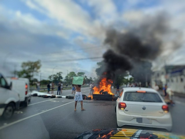 Está ocorrendo um protesto no Km 68 da BR 101, no Engenho do Meio, no Recife.